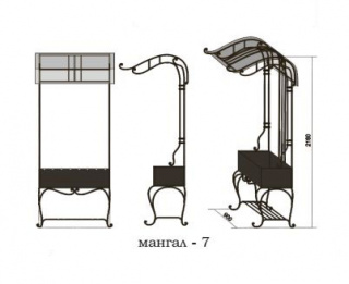 Мангал с крышей и декоративной художественной ковкой украсит территорию дачного, придомового или приусадебного участка. Крыша защитит готовящееся блюдо в случае дождя, а изящная ковка приятно удивит гостей. Такой мангал прекрасно подойдёт в качестве подарка на день рождения или другой праздник.