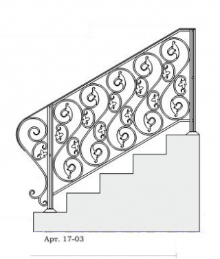 Кованые приглашения Арт. 17-03 для лестничных перил являются гармоничным завершением общей композиции лестницы. Данная модель сочетает в себе слияние классического и европейского стилей. Такой подход подразумевает лаконичность и сдержанность форм, красоту линий на фоне простоты исполнения кованого узора.