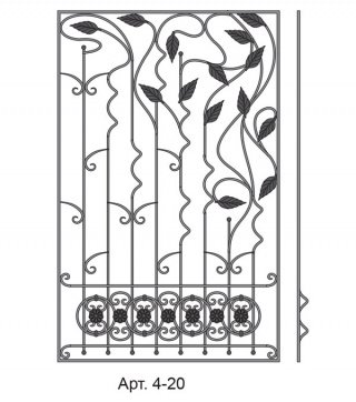 Данная модель решётки для окон сделана с орнаментом имитирующим стебли и листья растений. Послужит не только надёжной защитой от нежелательного проникновения в помещение, но и оригинальным украшением дома. Антикоррозийное покрытие обеспечит долгую службу данного изделия.