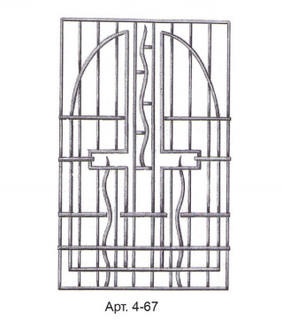 Кованая решётка на окна надёжно защитит Ваш дом или квартиру от проникновения злоумышленников и послужит эксклюзивным украшением экстерьера здания в целом. Ковка выполнена в стиле Модерн, благодаря большому количеству свободного пространства между элементами создаётся ощущение лёгкости и ажурности конструкции и не возникает чувства массивности кованого изделия.