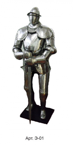 Стальная статуэтка кованого рыцарского доспеха послужит прекрасным украшением интерьеру любого загородного дома, приятно удивит гостей и подчеркнёт оригинальный вкус хозяина. Такой эксклюзивный объект арт-искусства прекрасно подойдёт для солидного загородного дома.